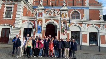 Das Programm der gut dreitägigen Gedenkreise ist voll und beeindruckend. Die Reise beginnt mit einem Empfang durch seine Exzellenz Rolf Schütte, Botschafter der Bundesrepublik Deutschland in Lettland. Neben Teilnehmerinnen und Teilnehmern der Delegation und der integrierten trinationalen Jugendbegegnung sind etliche Gäste aus Lettland eingeladen. Die deutsche Botschaft in Lettland sorgt mit einem schönen Abend für einen gelungenen Auftakt der Veranstaltung.